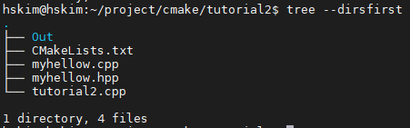 tutorial2 핵심은 myhellow.cpp와 myhellow.hpp 파일을 이용해서 library라는 target을 만드는 것이다.